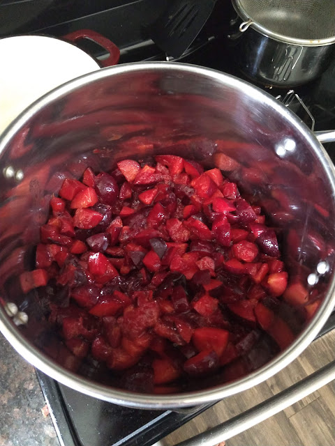 Meanwhile clean and bake (225F) canning jars to sanitize.